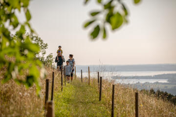 Ideal ist die Lage des Moierhofs für Kinder, die ihre ersten Versuche auf dem Rad oder erste Touren unternehmen: Ein autofreier Weg führt vom Hof zum nahen Chiemsee-Radweg, der flach am Ufer entlang verläuft. Auch einen Fahrradverleih gibt es in der Nähe des Hofs. Dort sind auch E-Bikes bzw. Pedelecs verfügbar, so dass du Steigungen schwungvoll überwinden oder problemlos mit einem schnelleren Partner mithalten kannst.