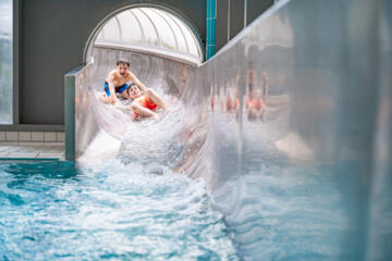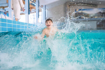 Im Wellenhallenbad das stärkende Gefühl der Brandungswelle oder die berauschende 76 m-Fahrt auf der Erlebnisrutsche genießen, das ist Spaß pur. Kleinkinder fühlen sich pudelwohl auf dem Wasserspielplatz. Ein besonderes Badeerlebnis bietet die 33 Grad warme Solewasser-Urmeertherme im Freien.
