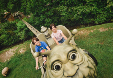 Mitten im romantischen Bergwald findet man Märchenfiguren, Dinosaurier und vieles mehr. Unterhaltung ist garantiert: Auf dem Rücken eines riesigen Drachen, im freien Fall in der Höllenrutsche im Rutschenparadies oder beim Kraxln in der Kletterspielanlage Robinson.