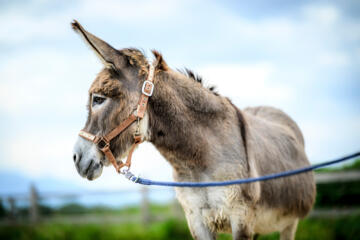 Ich heiße Mausi. Ich bin die einzige Eseldame auf dem Hof und auch schon etwas älter. Ich hab's gerne warm und liebe es geputzt zu werden. Bei Regenwetter gehe ich nicht gerne nach Draußen. Früher habe ich kleinere Kinder getragen, heute mag ich es lieber gemütlich und freue mich über eure Striegel- und Streicheleinheiten.