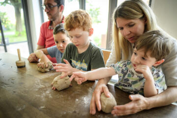 Die Kinder kneten mit Freude und viel Eifer den Teig. Dabei lernen sie, welche Zutaten ein gutes Brot braucht und warum es so wichtig ist, dass der Teig Zeit bekommt, um zu ruhen. Während der Teig im Ofen knusprig backt, können die Kinder mehr über das Leben auf dem Bauernhof erfahren und Susi mit ihren Fragen löchern. Wenn schließlich die kleinen Brote aus dem Ofen geholt werden, erfüllt der Duft den ganzen Raum und lässt allen das Wasser im Mund zusammenlaufen. Die Kinder sind stolz auf ihre Kreationen und können die duftenden Laibe mit nach Hause nehmen oder noch warm probieren.