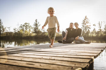 Für die Eltern wird die Alz zum Ort der Entschleunigung: Gemütlich ein gutes Buch lesen, den Blick über das glitzernde Wasser schweifen lassen und einfach durchatmen – hier könnt ihr die Ruhe der Natur in vollen Zügen genießen. Unser Alzsteg, nur 600 Meter Fußweg vom Hof entfernt, bietet euch einen idyllischen Platz, um die absolute Stille und die Schönheit der Umgebung zu erleben.