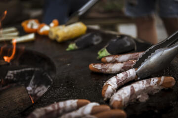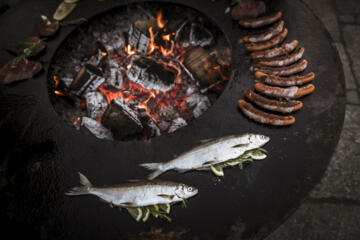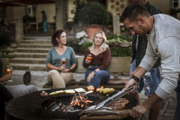 Zwei bis drei Mal pro Woche heizen wir unseren Feuerring mit Buchenholz aus unserem eigenen Wald an. Ein wenig Öl auf die heiße Platte, und schon steht einem unvergesslichen Grillerlebnis nichts mehr im Weg.