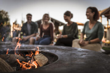 Wir lieben die gesellige Atmosphäre, die unser Feuerring schafft – hier lernen sich die Familien untereinander kennen, tauschen Urlaubserlebnisse und Ausflugstipps aus und oft entstehen neue Freundschaften, während die Kinder gemeinsam spielen.
