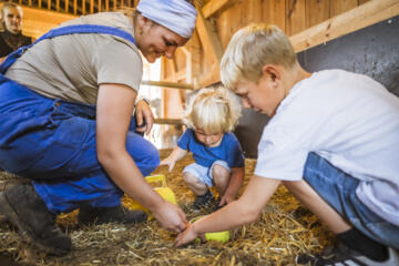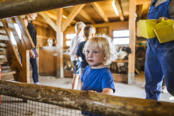 Mit jeder handvoll Futter lernt ihr die Tiere besser kennen und erfahrt spannende Geschichten über ihren Alltag und ihre Bedürfnisse. Die Kinder dürfen selbst mit anpacken. Während die Jungbäuerin Rebecca mit viel Geduld jede Frage beantwortet und erklärt wie wichtig der achtsame Umgang mit den Tieren ist, stupsen die Kälbern schon mal an und freuen sich auf ihren Milcheimer. Für die Kleinen wird das Füttern schnell zu einem Highlight, und auch die Eltern genießen die ländliche Ruhe und die Freude, die von den Tieren ausgeht.