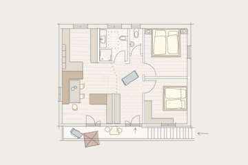 In der Ferienwohnung Fuchs könnt ihr auf dem sonnigen Ostbalkon die Weite der Chiemseelandschaft genießen. Die Wohnung bietet ein besonderes Highlight für Kinder: ein eigenes Kinderzimmer mit einer Spiel- und Schlaf-Galerie. Die offene Bauweise und die geschmackvolle Einrichtung verleihen dieser gemütlichen Wohnung ihre Großzügigkeit. Moderner Komfort und der Charme eines Urlaubs auf dem Bauernhof gehen hier Hand in Hand. Die Ferienwohnung Fuchs befindet sich im 1. Stock des Beihauses und hat 2024 einen neuen Look bekommen.