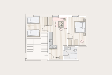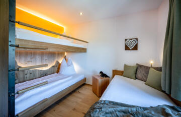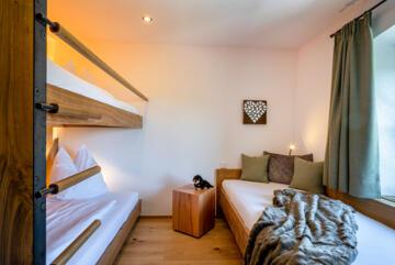 - Schlafzimmer: Elternschlafzimmer, Kinderzimmer mit drei Betten, davon ein Hochbett
